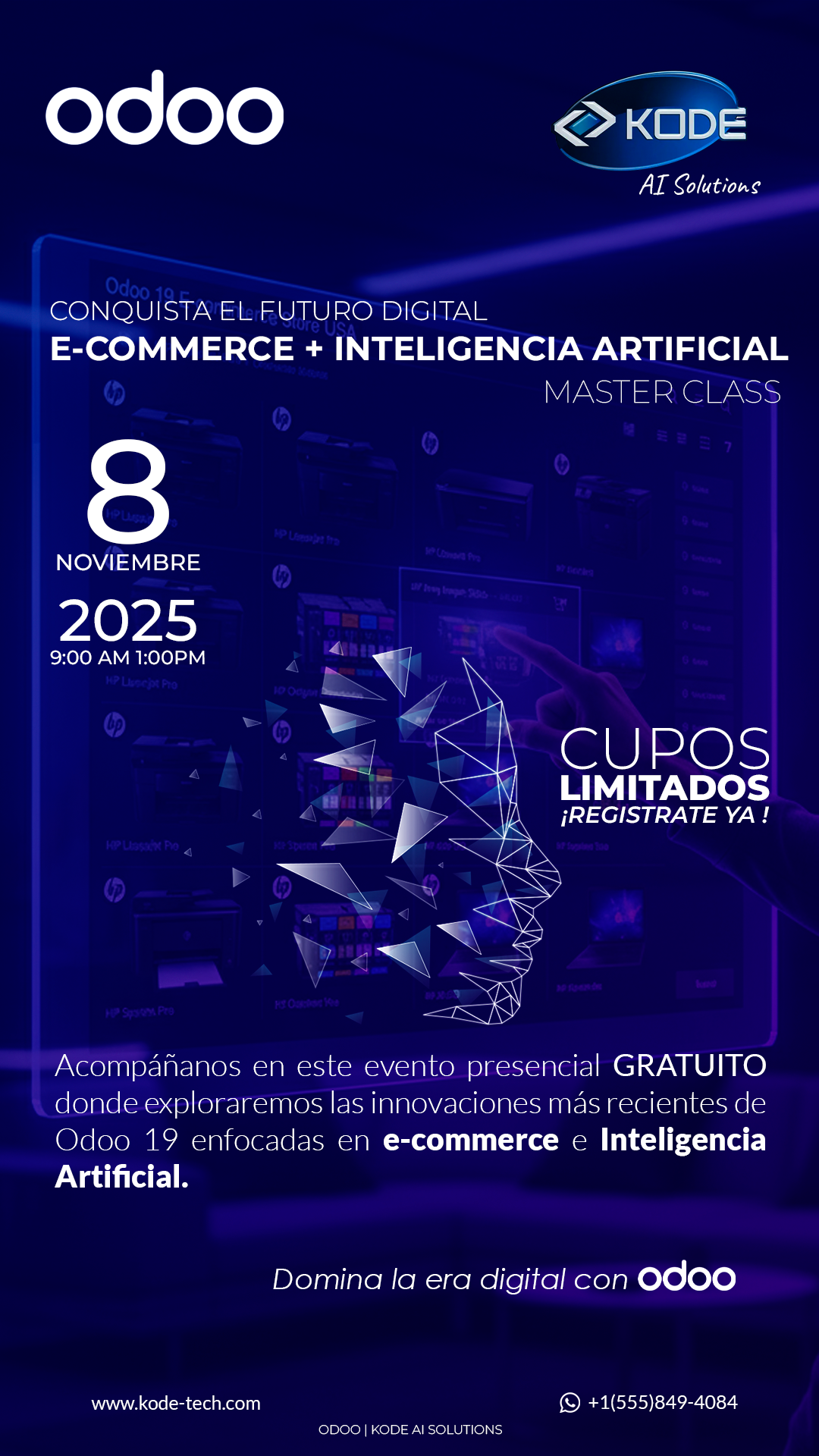 Este curso intensivo es una oportunidad única para aprender a configurar desde cero una tienda online profesional, conectar módulos clave como Ventas, Inventario y Facturación, y descubrir cómo las nuevas herramientas de IA pueden automatizar procesos, generar contenido y potenciar la experiencia de usuario.
